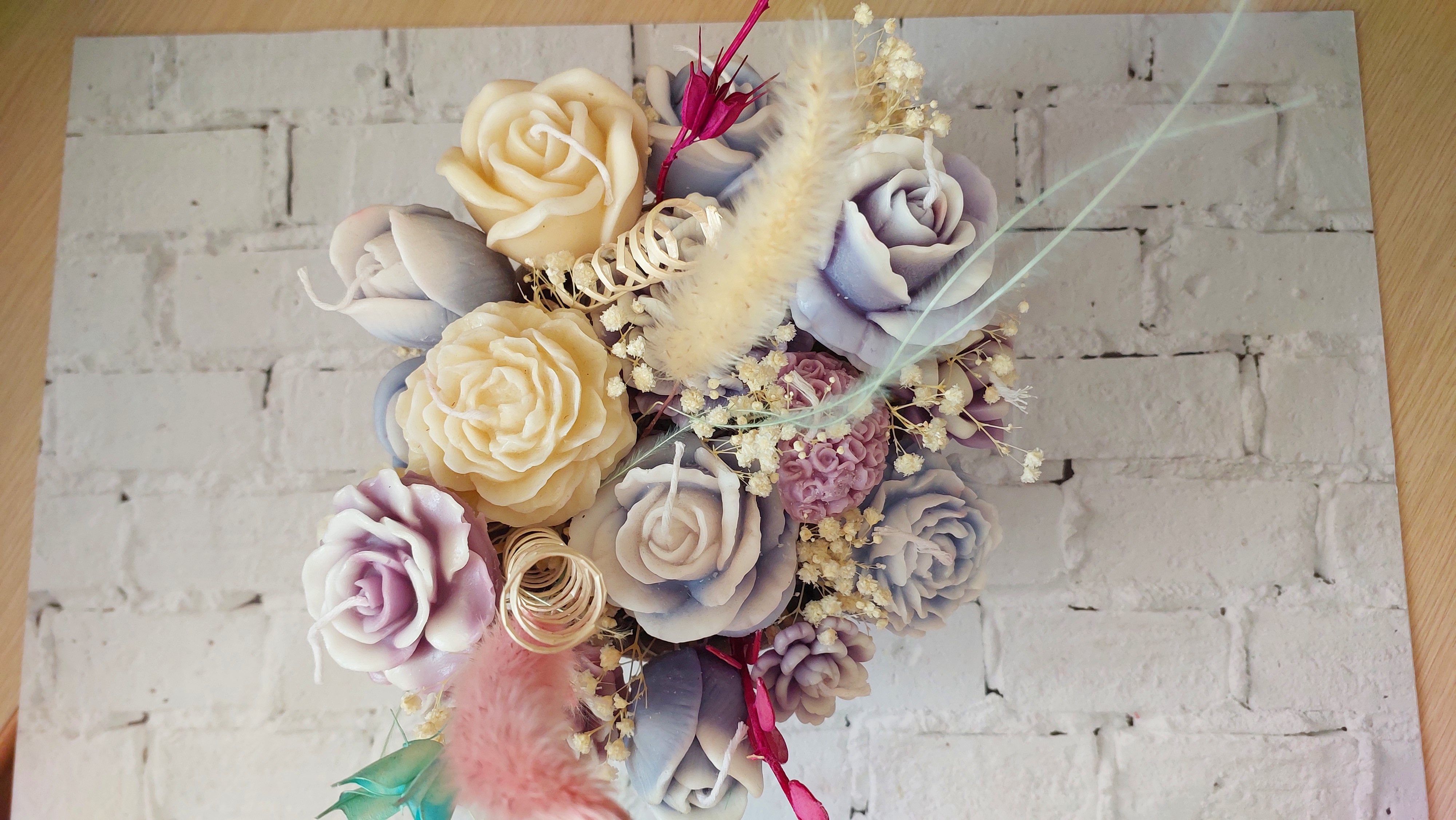 ست شمع ولنتاینی خرس و دستهگل و شیاردار در رنگبندی دلخواه