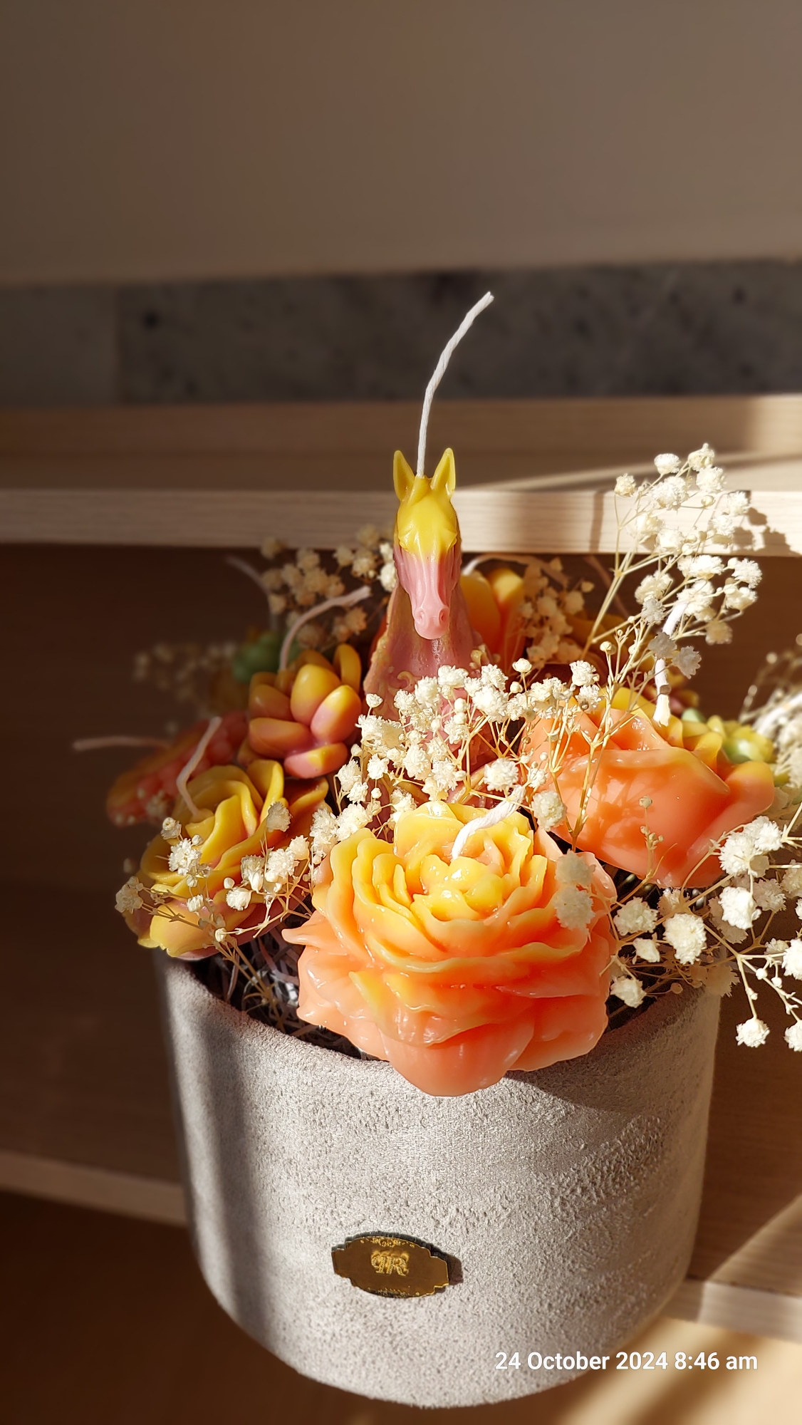 سبد گل شمع نارنجی روشن، زرد و اخرایی، ارتفاع ۳۰ الی ۳۵ سانت