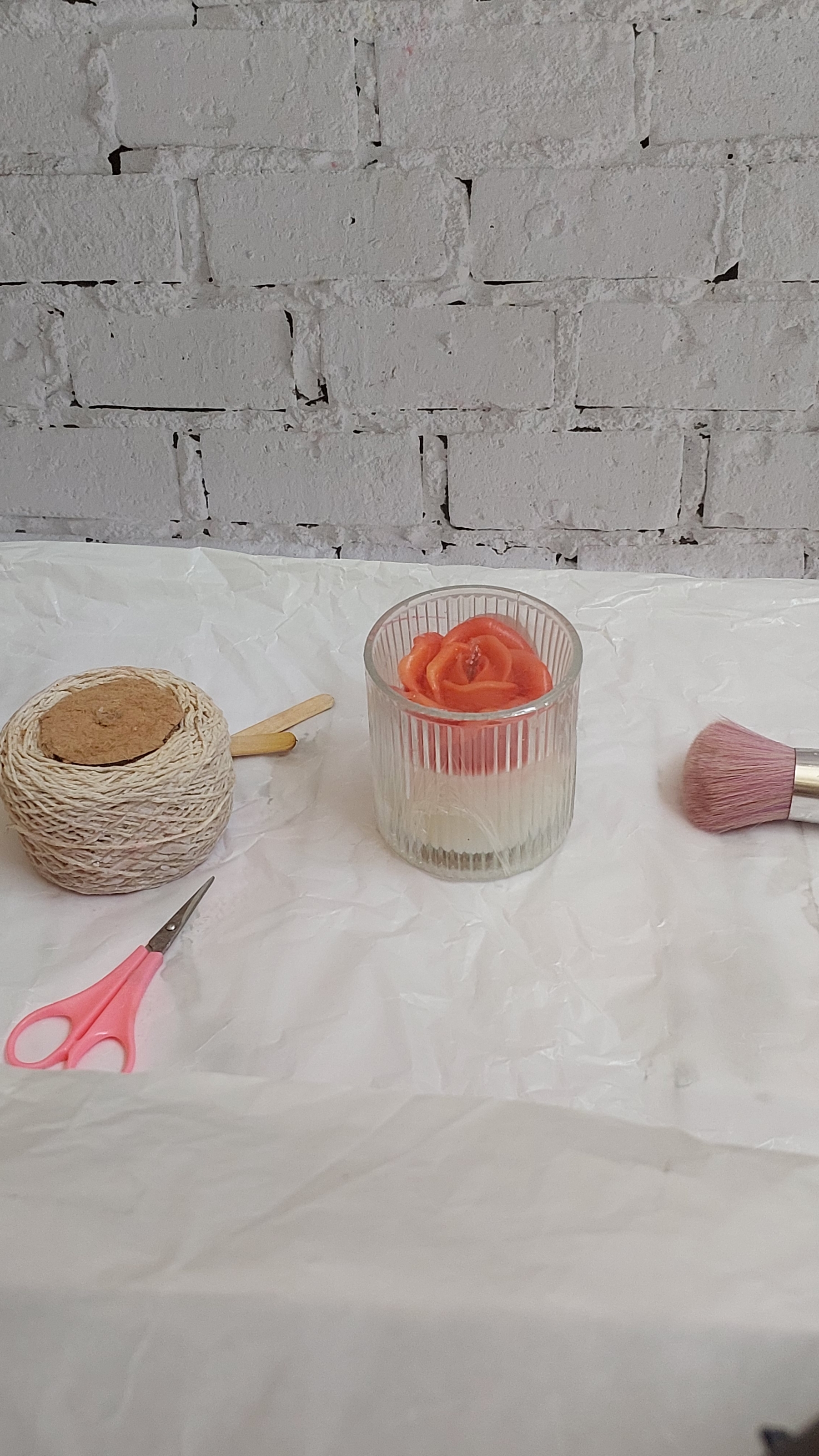 شمع شیشهای( شات) مات راهراه، با تزئین گل رز قرمز و زرد
