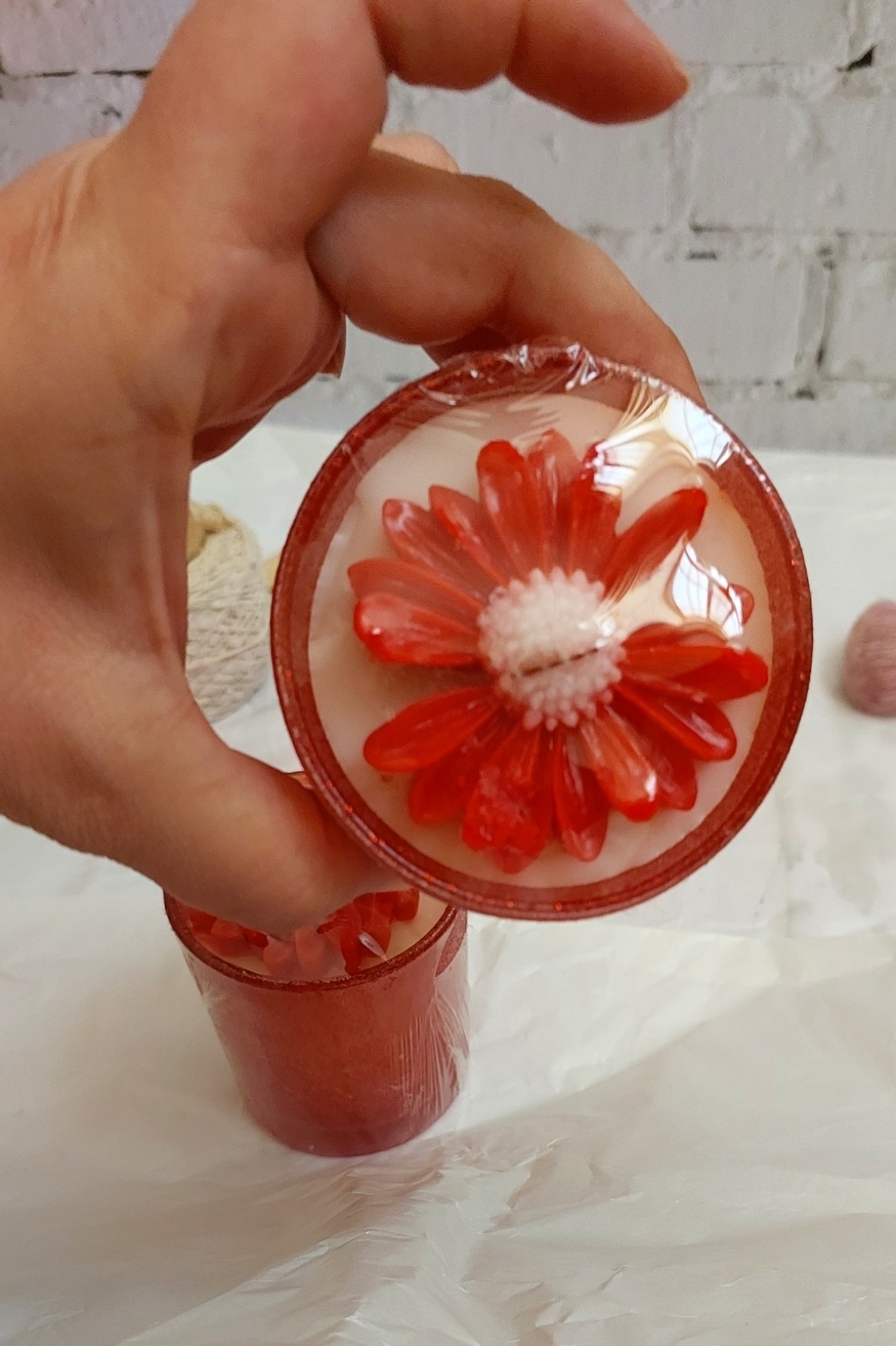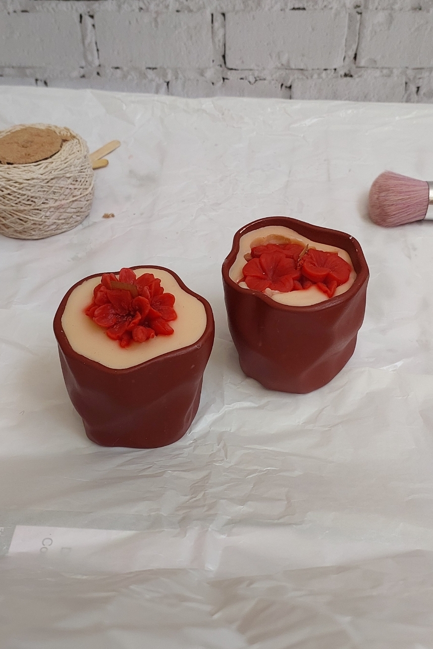 شمع شات سنگی قرمز متالیک با تزئین گل گیلاس
