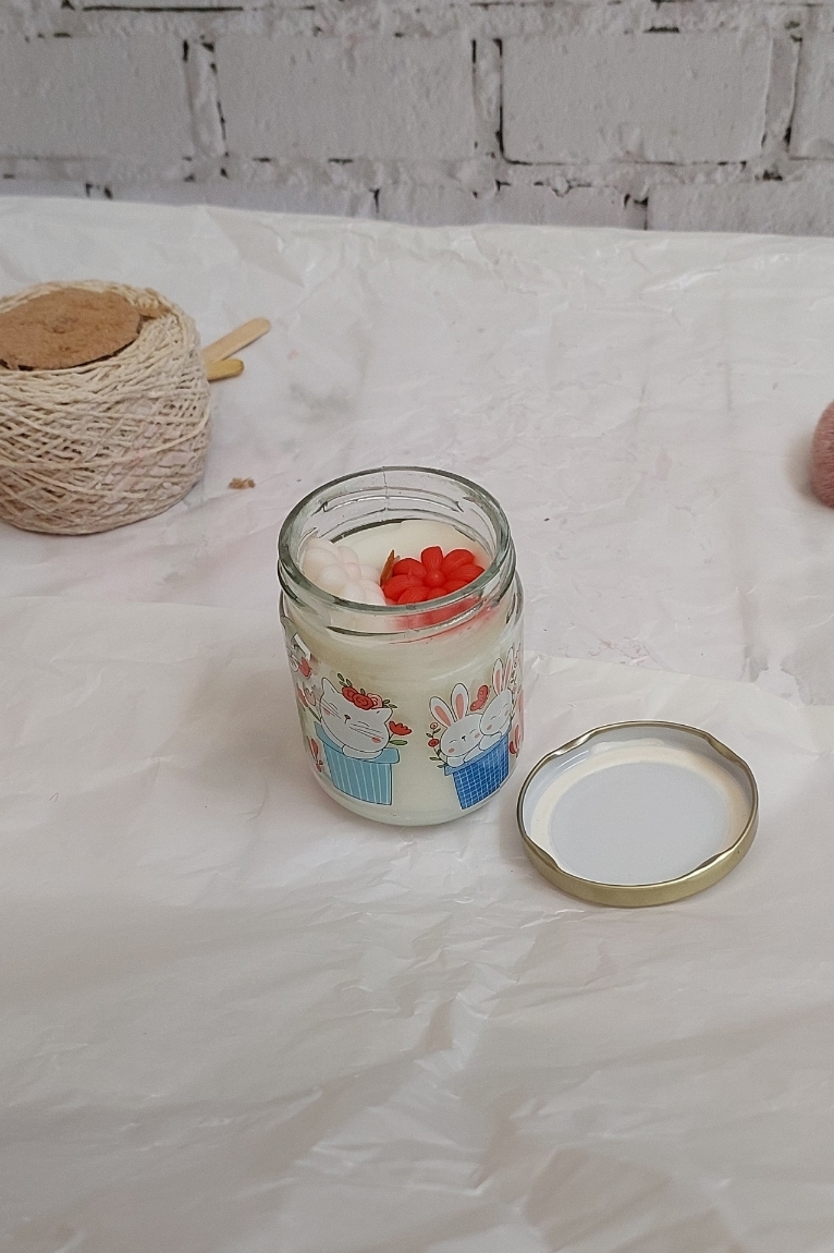 شمع شیشه دردار عطری طرح خرگوش ولنتاین