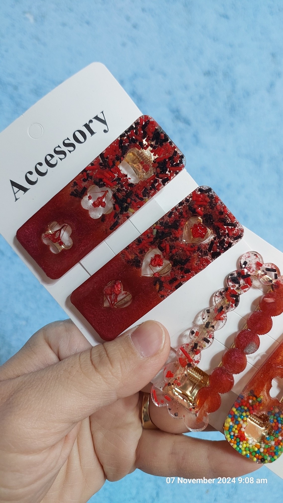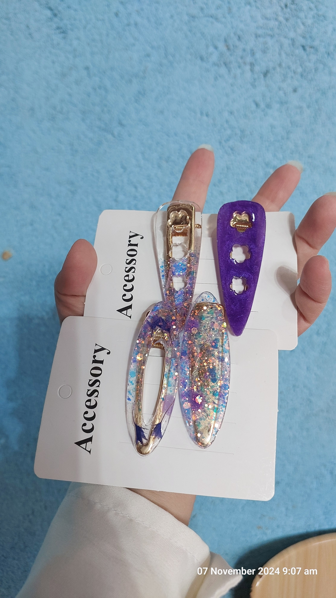 دو جفت گیره سر رزینی گل بنفش شیشهای